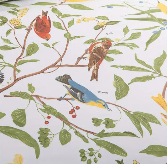 Ensemble de housse de couette queen deluxe à motif oiseaux en coton égyptien
