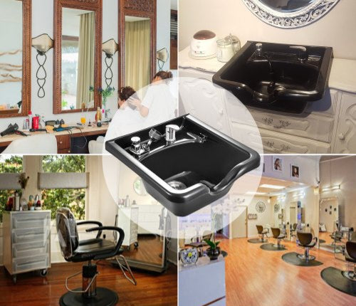 Avec son kit d'installation complet et sa protection contre les débordements, ce lavabo noir lustré offre une solution pratique pour votre salon de coiffure.