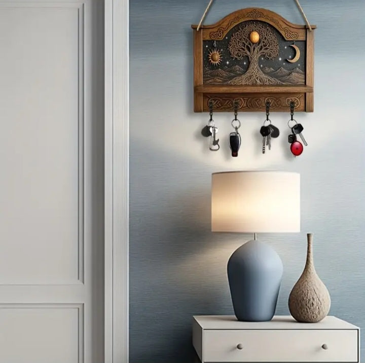 Porte-clé mural en bois Arbre de vie
